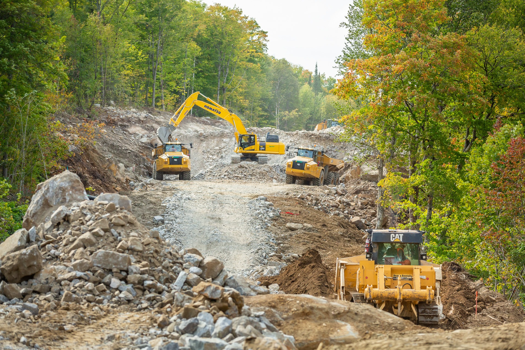 Projet Matawinie, Route d'accès Client Nouveau Monde Graphite Valeur 7.5M $ Envergure Réalisation d'une nouvelle route de 8 km Main-d'oeuvre + de 50 travailleurs Flotte d'équipement + de 25 unités Description du projet Essouchage et décapage - 25 ha Forage et dynamitage Excavation et déblai de masse Travaux d'infrastructure pour la nouvelle route d'accès au futur site minier Ponceaux et ouvrages connexes - 36 unités Concassage et agrégats - 170 000 tm